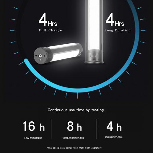 - * Ingebouwde batterij met grote capaciteit: ingebouwde 7,4 V 2850 mAh oplaadbare lithiumbatterij, die ongeveer 4 uur werktijd onder 100% helderheid kan ondersteunen;