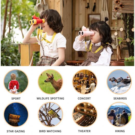 - * Kan in twee verrekijkers worden gedemonteerd: door het geavanceerde ontwerp kan een verrekijker in twee mini-verrekijkers worden gedemonteerd, zodat kinderen met anderen kunnen delen, het plezier wordt vermenigvuldigd en de schattige vormen het favoriete speelgoed van kinderen worden;