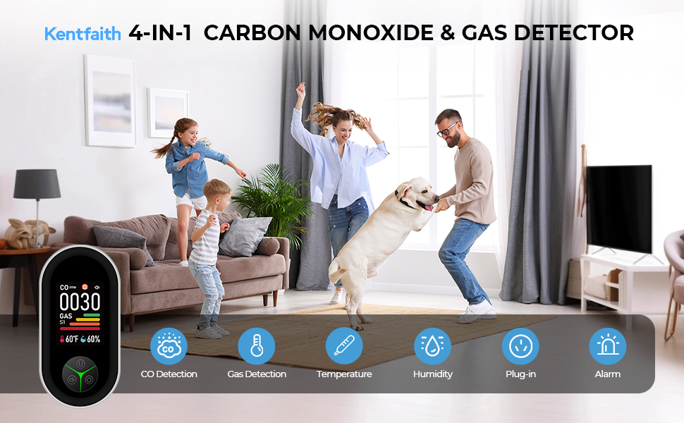 - * <b>【4-in-1 verbeterde koolmonoxide- en gasdetector</b> Geniet van volledige gemoedsrust met realtime bescherming. De Kentfaith geüpgradede 4-in-1 detector houdt continu natuurlijk gas, koolmonoxide, temperatuur en locatie in de gaten, waarbij alle gegevens worden weergegeven op een helder, gemakkelijk af te lezen digitaal scherm. Of u nu aan het koken bent, ontspannend of slaapt, u kunt gerust ademhalen.