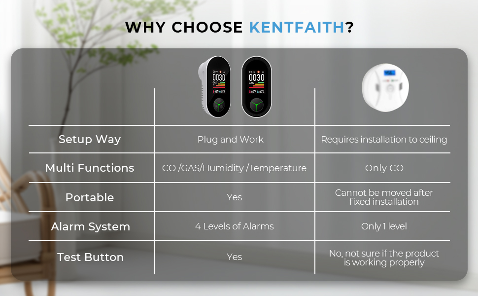 - * <b>【Uw Ultieme Veiligheidsmetgezel】</b>De Kentfaith reis CO-monitor is perfect voor huizen, appartementen, keukens, slaapkamers, woonkamers, badkamers, garages, kantoren, restaurants, hotels, campers en magazijnen. Waar het leven u ook brengt, biedt deze gas- en koolmonoxidemelder de betrouwbare bescherming die u en uw dierbaren verdienen.
