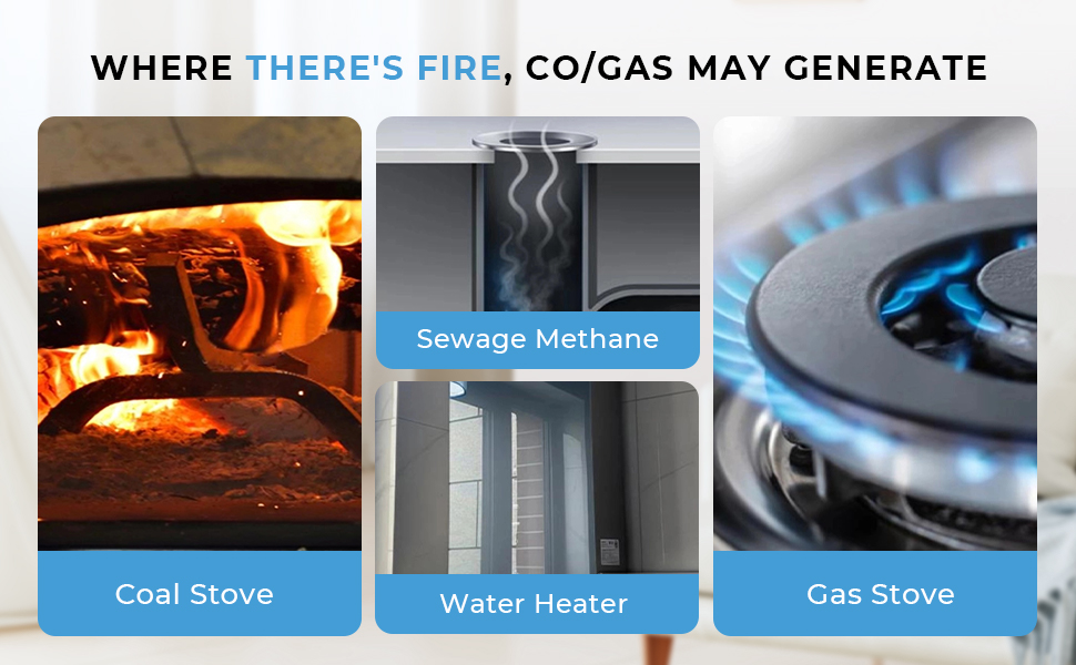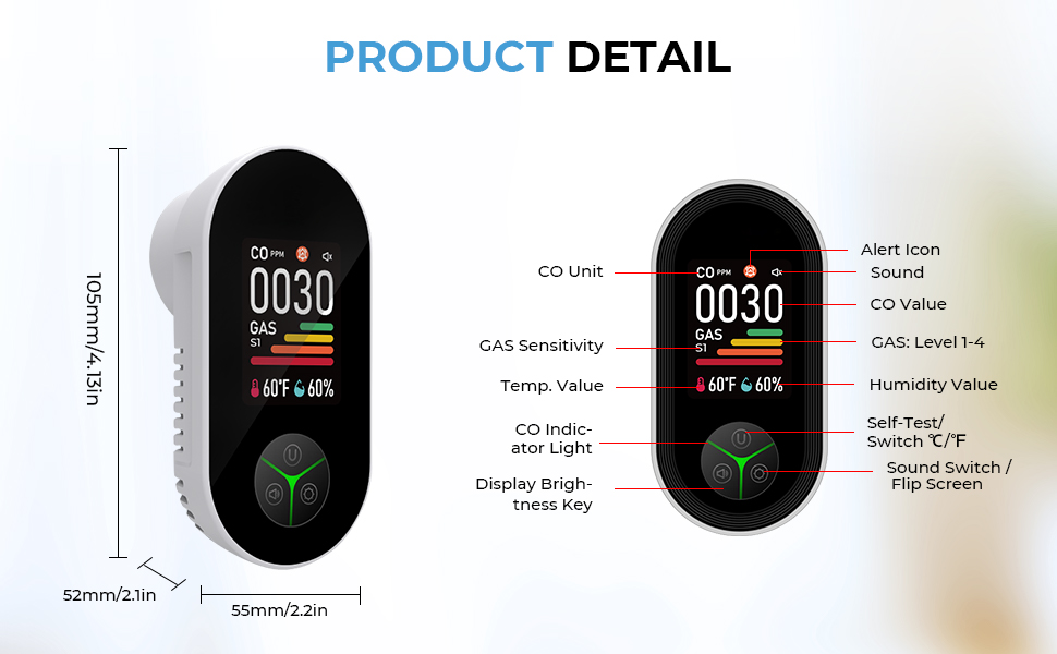 - Bescherm uw huis en werkruimte met onze koolmonoxide-gasdetector. Hij detecteert koolmonoxide en brandbare gassen, terwijl hij ook de temperatuur en buitenshuis in realtime ondergrond. Perfect voor woonkamers, keukens, slaapkamers, kantoren, garages, magazijnen, campers, hotels en meer. Snelle, betrouwbare waarschuwingen houden u 24/7 veilig.