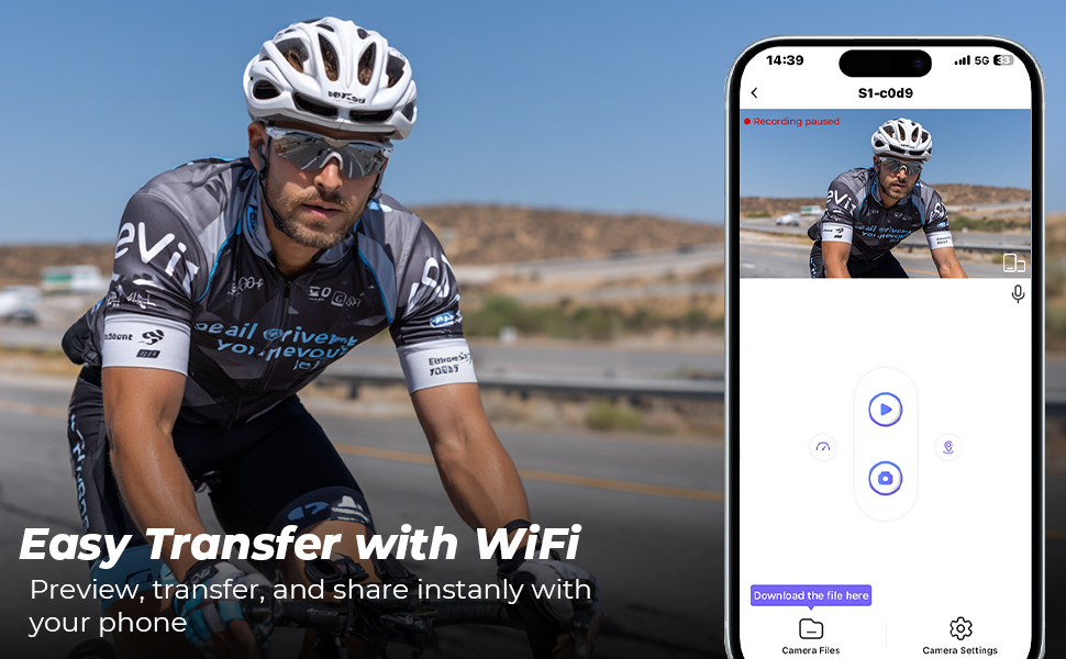 Geen gedoe meer met SD-kaarten uitwerpen of aansluiten op een computer. Met ingebouwde WiFi en een bijbehorende app kun je je beelden in seconden bekijken, downloaden en delen—rechtstreeks vanaf je telefoon. Of het nu bewijs is voor een claim of een rit die de wereld moet zien, het is slechts één tik verwijderd.