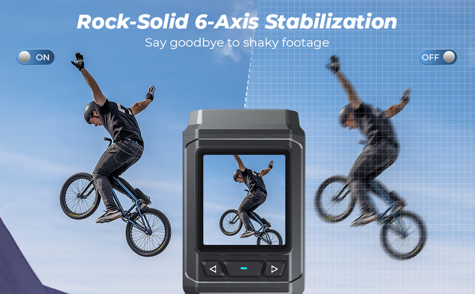 Absoluut. 6-assige elektronische beeldstabilisatie houdt je video's soepel en duidelijk—zelfs op hobbelige wegen.