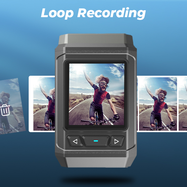 Geen opslagstress meer. Met loopopname legt de 4K-fietscamera continu je rit vast en overschrijft de oudste clips wanneer de kaart vol is. Elk belangrijk moment blijft bewaard, met ondersteuning voor tot 256GB opslag.