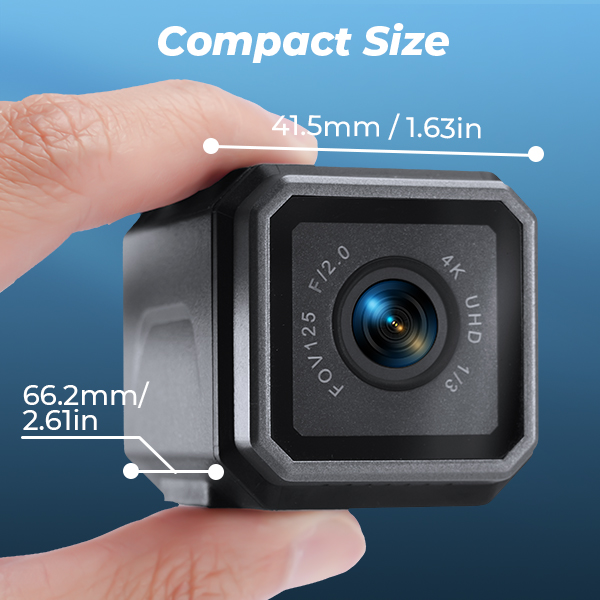 Gepakt met krachtige functies en toch slechts 124,4 g (4,39 oz) wegend, blijft deze motor-dashcam strak en onopvallend. Het compacte formaat (66,2 × 41,5 × 41,5 mm / 2,61 × 1,63 × 1,63 inch) voegt bijna geen volume toe aan je stuur of helm, zodat je vrij kunt rijden zonder extra gewicht.