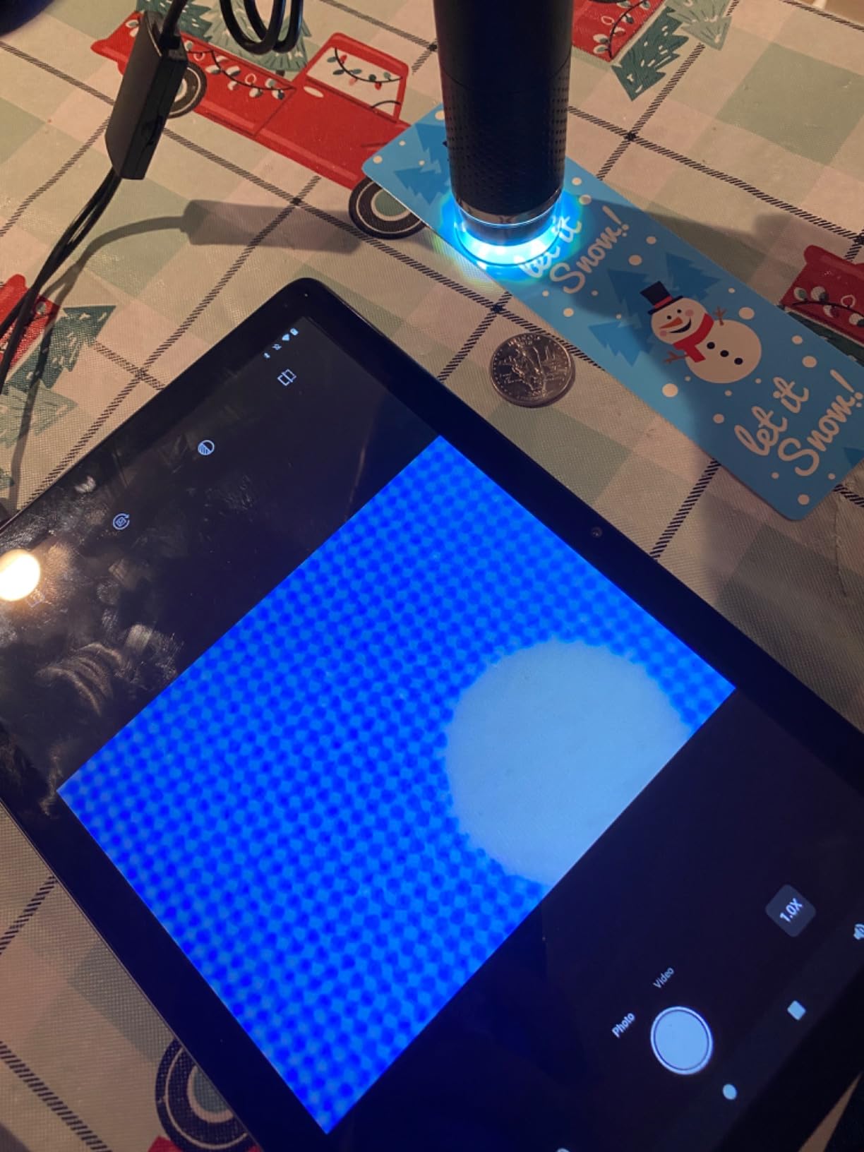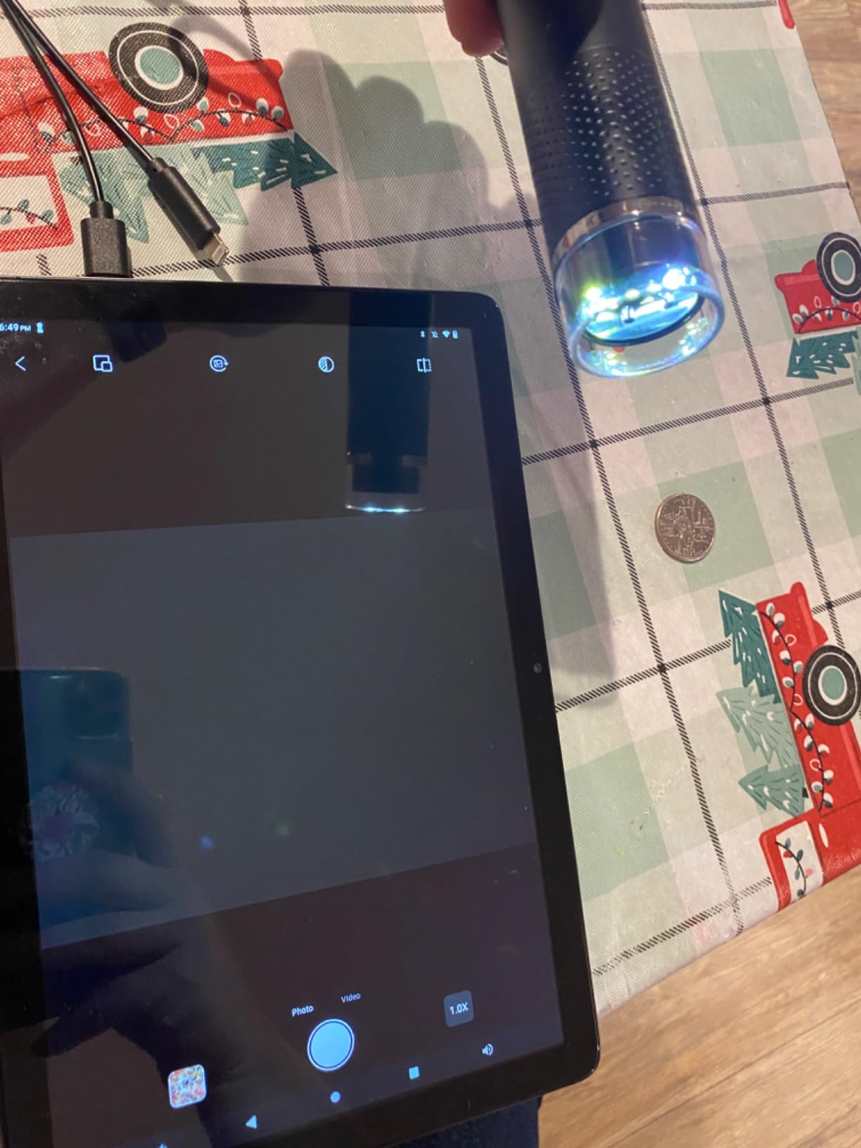 Dus, ik heb een microscoop die lijkt op deze, maar die via USB-A verbinding maakt met een pc... En dat is leuk, maar het is ook vervelend omdat je zoveel apparatuur moet meeslepen als je er iets mee wilt bekijken. Daarom dacht ik dat het leuk zou zijn om er een te kopen die verbinding maakt met je telefoon. De kinderen en ik hebben het erg naar ons zin gehad om door het huis te lopen en dingen van dichtbij te bekijken. Het voelde een beetje als de film "Honey I Shrunk the Kids" toen we naar al die dingen in ons huis keken. Het wordt behoorlijk wild, soms is het een beetje walgelijk wat je ziet in die verborgen kleine wereld waar we geen idee van hebben. Hoe dan ook, kijk naar mijn foto's en probeer te raden waar ik foto's van heb gemaakt met de scoop. Ik zal de antwoorden aan het einde van mijn recensie plaatsen. Voordelen: Gemakkelijk te gebruiken, download gewoon een app en sluit de kabel aan en het werkt. Ingebouwde verstelbare verlichting, sluiterknop ingebouwd in het snoer, kan behoorlijk interessante opnamen maken. Nadelen: - Het is gemakkelijk om gedesoriënteerd te raken bij het bewegen. Als je naar links beweegt, kan het omhooggaan op je scherm, tenzij je het goed georiënteerd hebt. - Er is een beetje een leercurve met de helderheidsaanpassing, maar als je er eenmaal aan gewend bent, werkt het behoorlijk goed. Al met al is het behoorlijk fatsoenlijk en ik heb ervan genoten om het te gebruiken. Oké, dus de foto's die ik heb geplaatst, hier zijn de antwoorden: Afgedrukte brief op papier De zijkant van een dubbeltje De scherpe punt van een potlood De rand waar de potloodverf is afgeschoren Een bloemblaadjessteel Een bloemblaadje Een geweven stoffen band De blauwe lijn op een gelinieerd stuk papier Leuk toch? Het is een behoorlijk handig klein apparaatje.