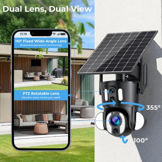 - Uitgebreide bewaking: Dubbele lenzen bieden een compleet beeld van uw omgeving met gedetailleerde close-ups.