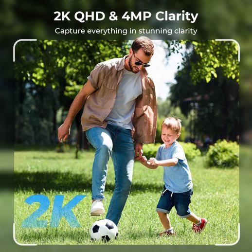 Met 2K resolutie legt uw draadloze buitenbeveiligingscamera elk moment in verbluffende enorme vast. Stel je voor dat je gezicht bij de poort duidelijk herkent, kentekenplaten op de oprit van de speelse grapjes van huisdieren in de tuin – allemaal met scherpe, levendige beelden.