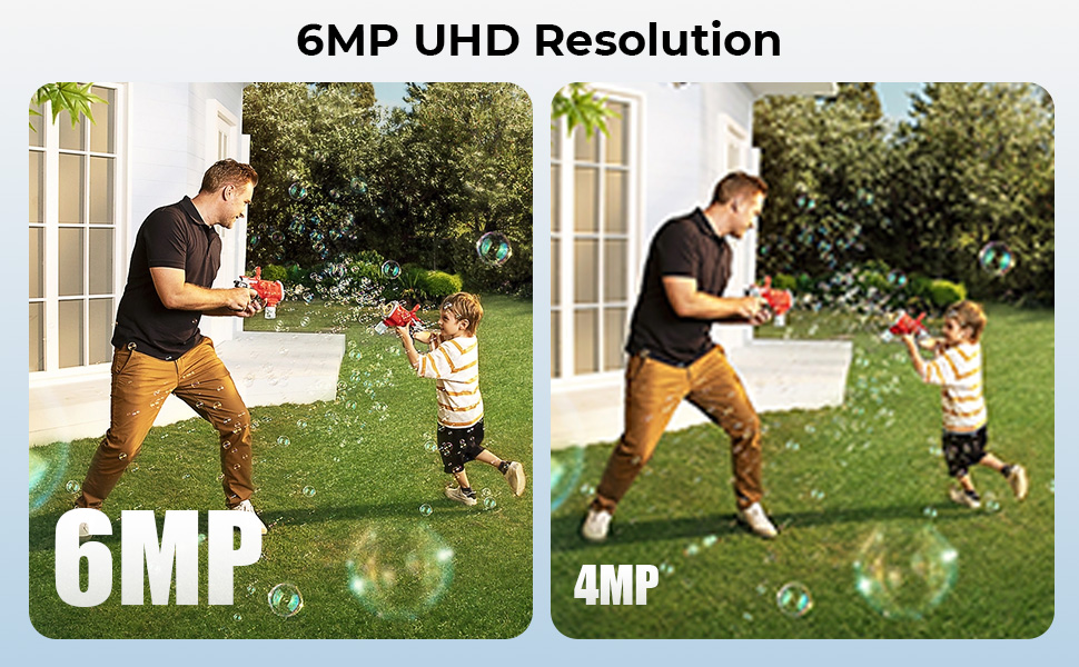 - * 6MP Ultra HD & Kleuren Nachtzicht: Leg scherpe 6MP UHD-beelden vast, dag en nacht. 10 ingebouwde LED-spotlights zorgen voor levendig kleuren-nachtzicht tot 30 m, automatisch schakelend naar infrarood in totale duisternis. Mis nooit gezichten, kentekens of andere belangrijke details.