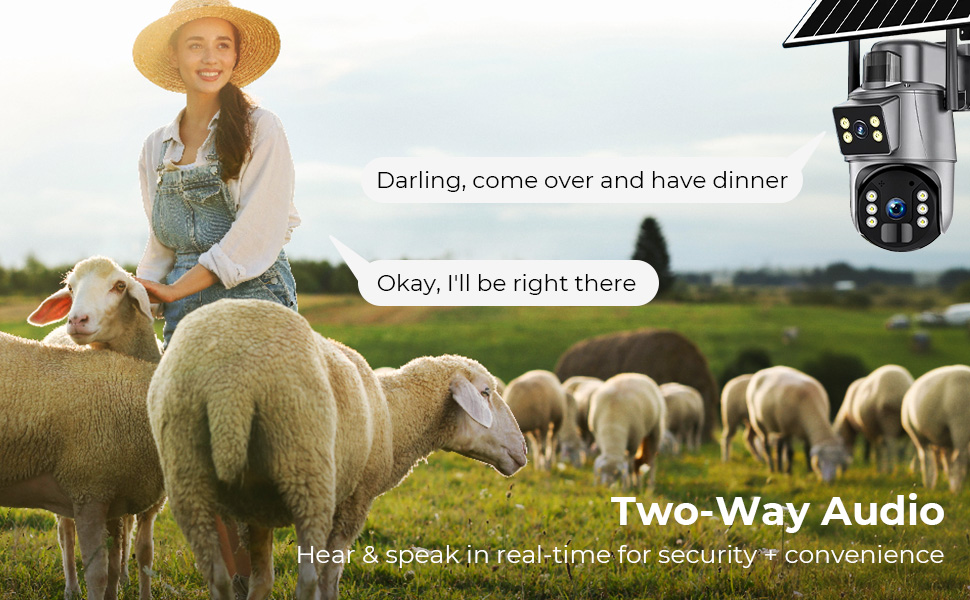 - Onze beveiligingscamera met dubbele lens beschikt over een geruisloze microfoon en luidspreker voor directe tweerichtingscommunicatie. Begroet de postbode, zeg een pakketdief om "weg te gaan" of kalmeer een huisdier—allemaal in realtime, vanaf elke locatie. Bescherm uw huis met uw aanwezigheid, zelfs wanneer u er niet bent.