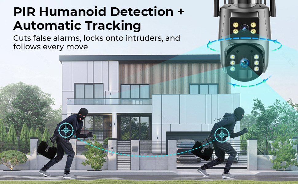 - • PIR-mensachtige detectie & automatisch volgen – Detecteert en volgt beweging in realtime