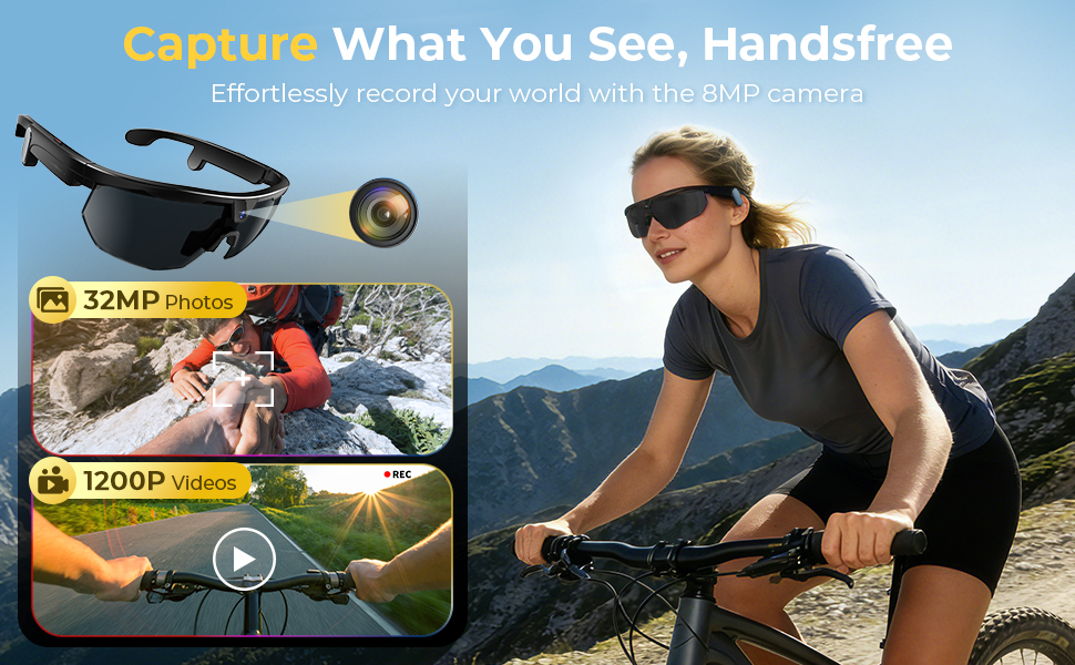 Kentfaith fietsbrillen combineren een 8MP-camera, muziekspeler, UV-beschermende lenzen en een AI-assistent in één strak, lichtgewicht ontwerp. Rij je favoriete route terwijl je adembenemende first-person beelden vastlegt, meedeint op je afspeellijst en handenvrij chat met vrienden of onze slimme AI — alles naadloos. Deel video's die je publiek rechtstreeks in je helm plaatsen — alsof ze elke bocht, elke klim en elke opwindende afdaling zelf meemaken, alsof ze naast je rijden.
