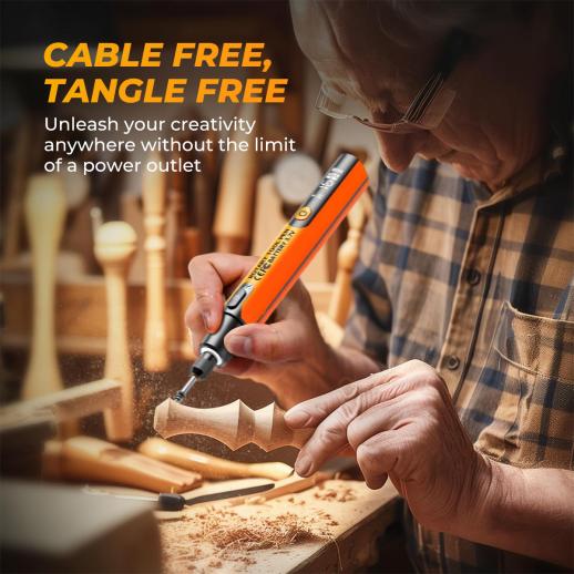 - Geen steile leercurve. Geen gedoe. Pak het gewoon en begin met creëren. Deze mini draadloze roterende tool voelt meteen natuurlijk aan – lichtgewicht, comfortabel en gemakkelijk te bedienen vanaf de eerste keer indrukken. En met 39 zorgvuldig geselecteerde accessoires (we kiezen de meest nuttige, meest populaire), ben je direct klaar voor talloze projecten.