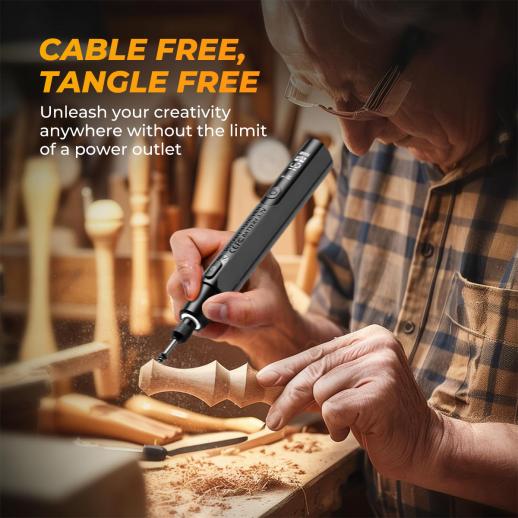 - Geen steile leercurve. Geen gedoe. Pak het gewoon en begin met creëren. Deze mini draadloze roterende tool voelt meteen natuurlijk aan – lichtgewicht, comfortabel en gemakkelijk te bedienen vanaf de eerste keer indrukken. En met 39 zorgvuldig geselecteerde accessoires (we kiezen de meest nuttige, meest populaire), ben je direct klaar voor talloze projecten.