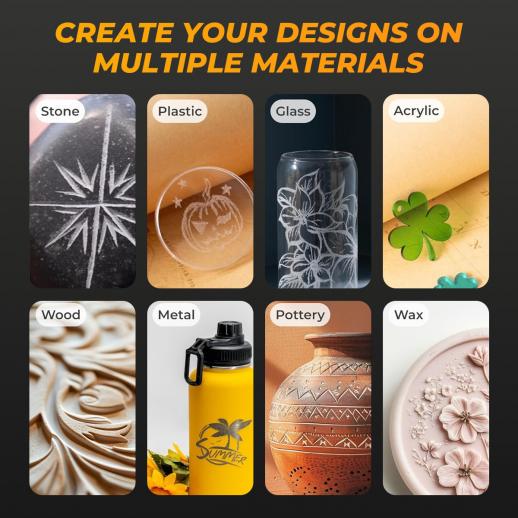 - Kies een project—polijsten, schuren, boren, graveren of snijden—en laat het plezier beginnen! Schakel je Kentfaith roterende tool in en voel die soepele, vrolijke zoem terwijl het je ideeën tot leven brengt. Elke draai en doorsnede voelt speels en uitgebreid. Met de Kentfaith mini draadloze roterende tool krijg je dat warm, trotse "Ik heb dit gemaakt!" moment.