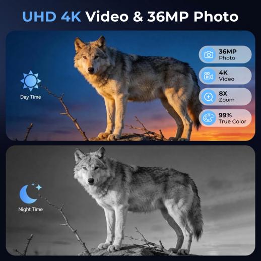 - * Vang Elk Moment in Ware 4K: Aangedreven door een geavanceerde sensor op sterrenlichtniveau, kunnen de Kentfaith nachtzichtverrekijkers 4K UHD-video's opnemen en scherpe 36MP-foto's vastleggen, zelfs na het donker. De 8× digitale zoom brengt verre onderwerpen dichterbij, terwijl de meegeleverde 32GB TF-kaart voldoende opslag biedt voor uw avonturen.