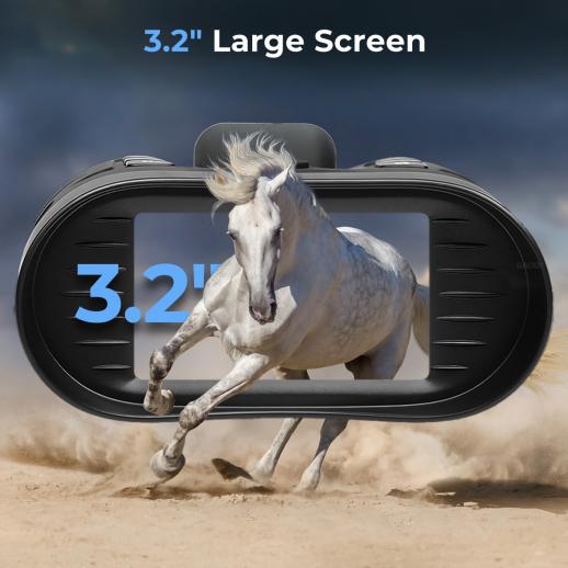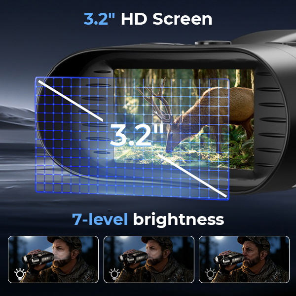 - * Groter scherm. Meer comfort: Uitgerust met een groot 3,2" scherm, bieden de 4K nachtzichtverrekijkers een helderder, meeslepender beeld zonder het apparaat oncomfortabel dicht bij uw ogen te houden. In combinatie met 7 niveaus instelbare schermhelderheid, zorgt het voor comfortabel kijken onder alle lichtomstandigheden.