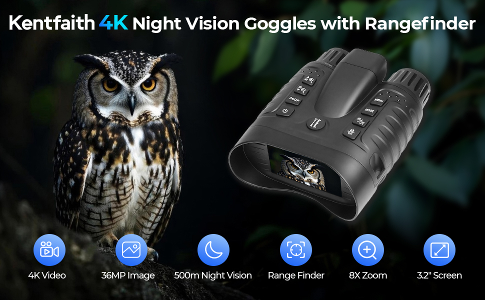 Kentfaith 4K Nachtzichtbril met Afstandsmeter