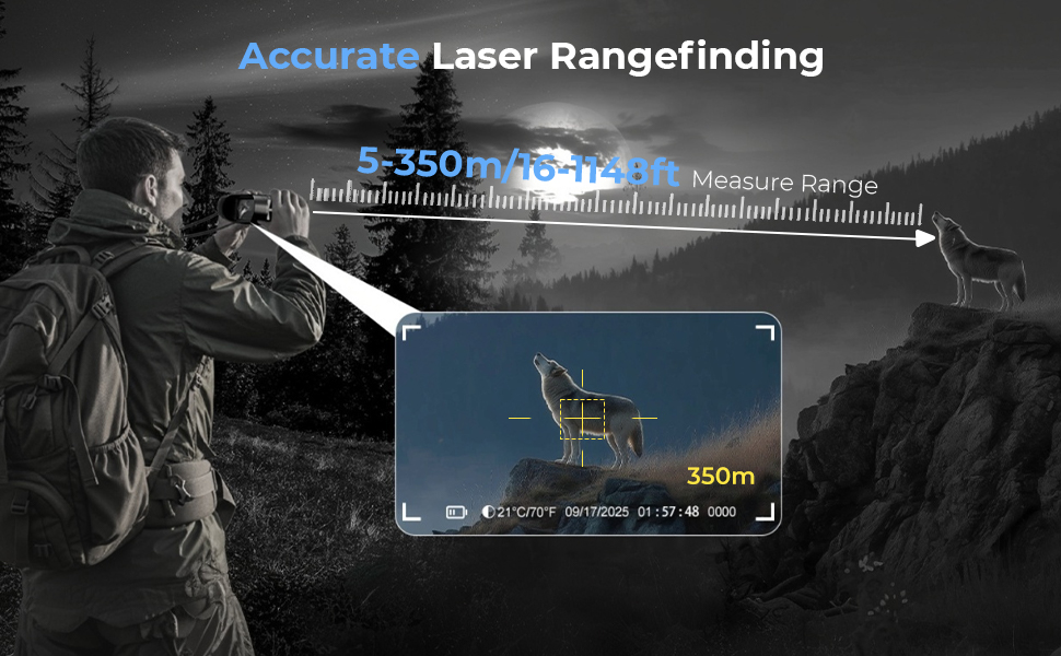 Uitgerust met een ingebouwde laserafstandsmeter, meten de Kentfaith nachtkijkers afstanden van 5–350 m (16–1148 ft), waardoor giswerk in het donker overbodig wordt. De precisie blijft behouden over verschillende bereiken—±0,2 m (≤10 m), ±0,5 m (11–69 m), ±1 m (70–109 m) en ±1,5 m (110–300 m)—zodat u kunt vertrouwen op betrouwbare metingen, dichtbij of veraf. Ideaal voor wildobservatie, nachtjacht en eigendomsbewaking.