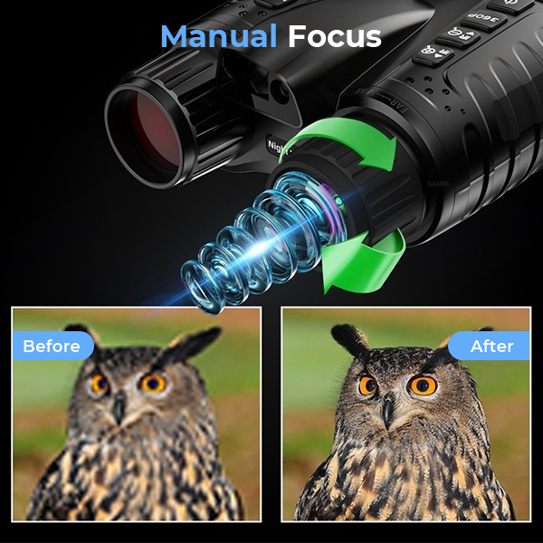 Of je nu nabije beweging observeert of verre doelen scant, met handmatige scherpstelling kun je het beeld in enkele seconden verfijnen. Het is ideaal voor nachtelijke observatie wanneer automatische scherpstelling moeite kan hebben, zodat je altijd een scherp en duidelijk beeld krijgt wanneer het er het meest toe doet.
