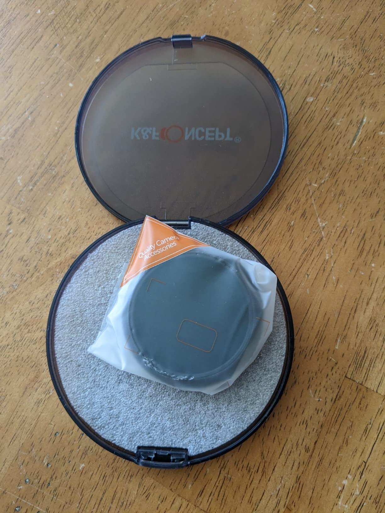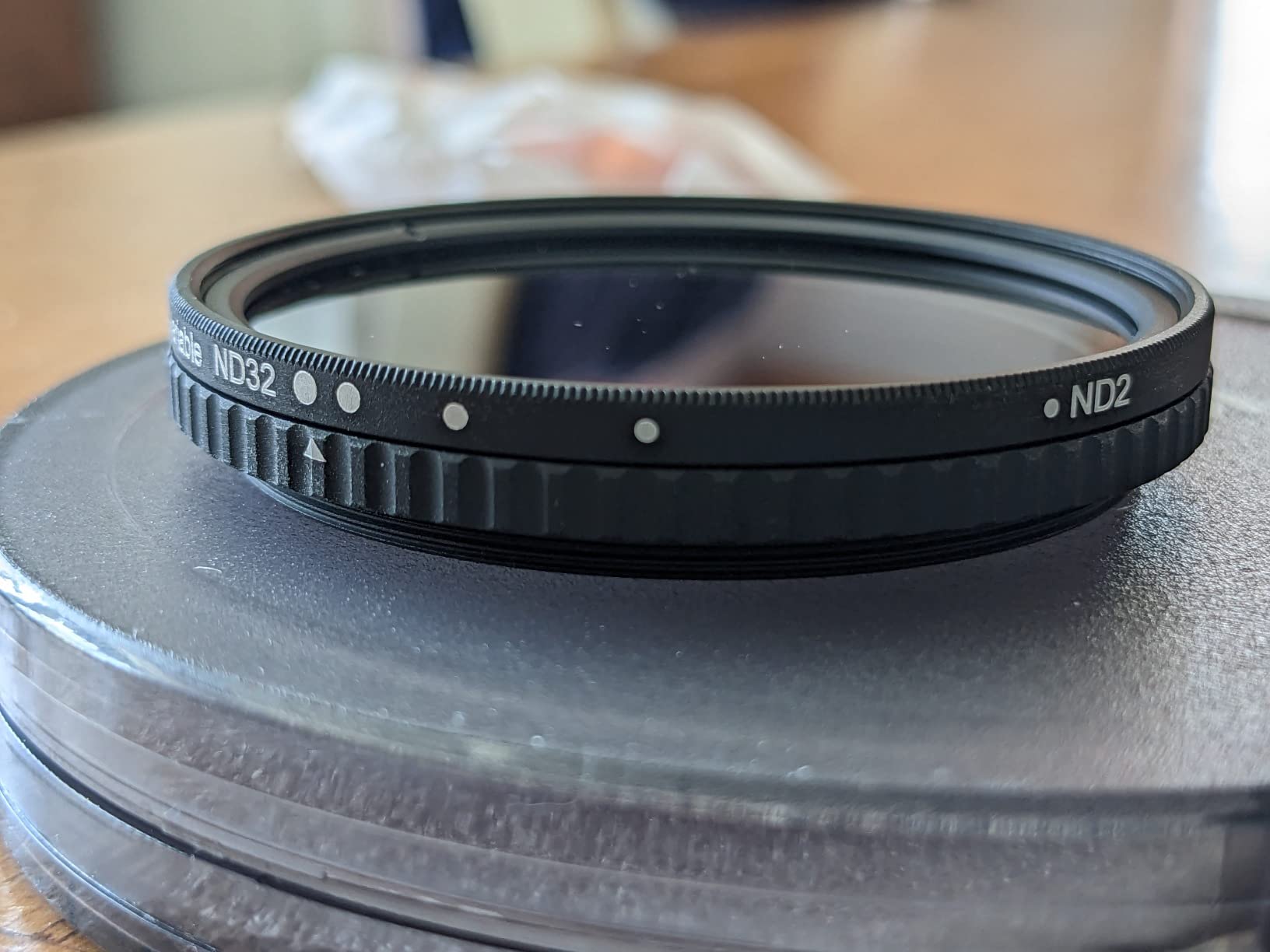 Een zeer goed gemaakt filter, iets zwaarder van constructie dan andere filters die ik heb gebruikt. Vanwege de breedte kun je de zonnekap echter niet bevestigen. Maar omdat dit een variabel filter is dat rotatie vereist, moet u. Misschien wil je de kap toch niet gebruiken.