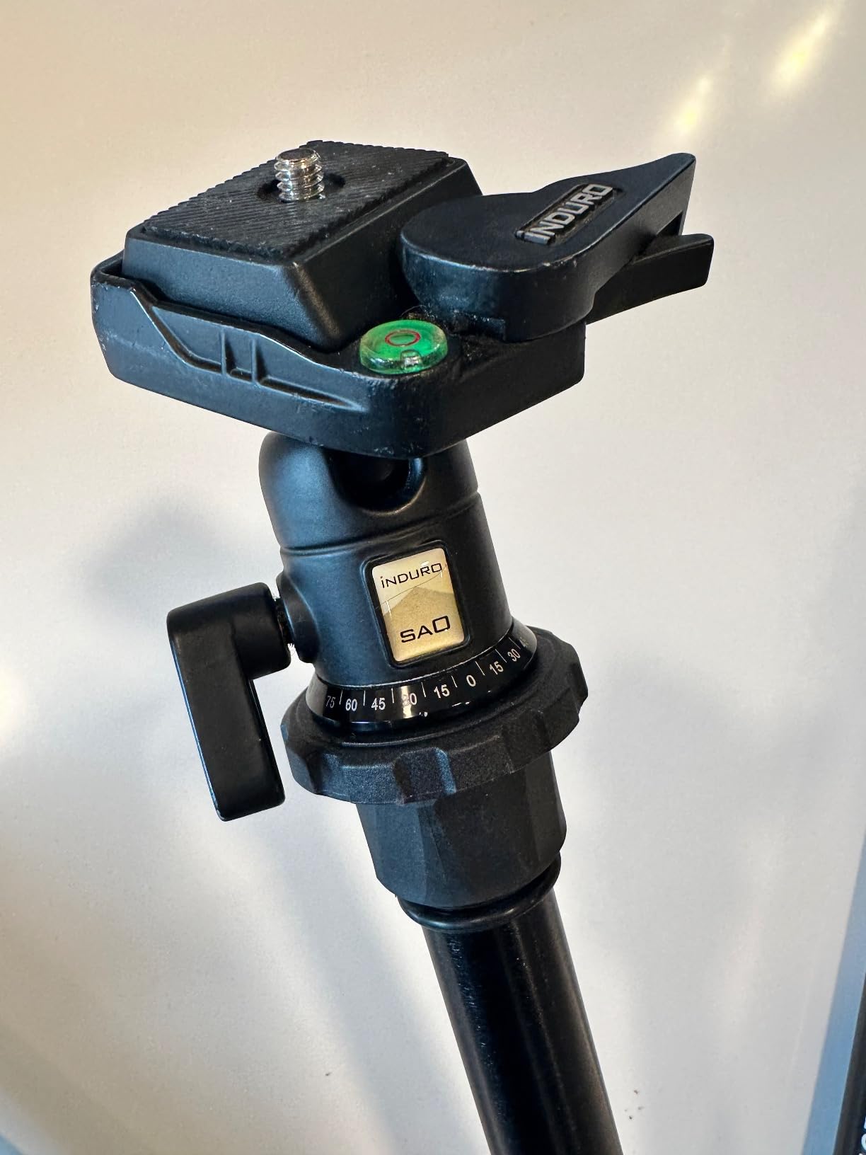 een kleine tekortkoming. Er zit een libel op het statief, die verborgen is wanneer de camera gemonteerd is... dat is een beetje jammer als je het statief moet verplaatsen. Maar het