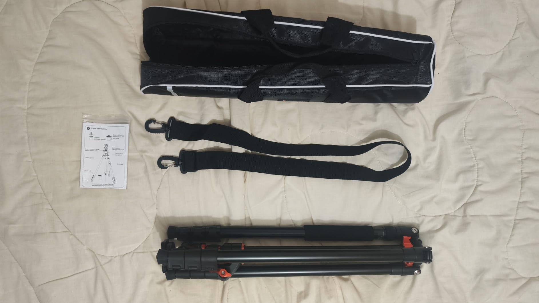 Toen het statief arriveerde, was ik meteen verrast... het komt in een goed draagbare tas en de bal hoofd is extra beschermd met een kleine tas. Een snack en een (toegegeven) enigszins schaarse instructie is ook inbegrepen. Maar... heb je echt begeleiding nodig voor het statief?