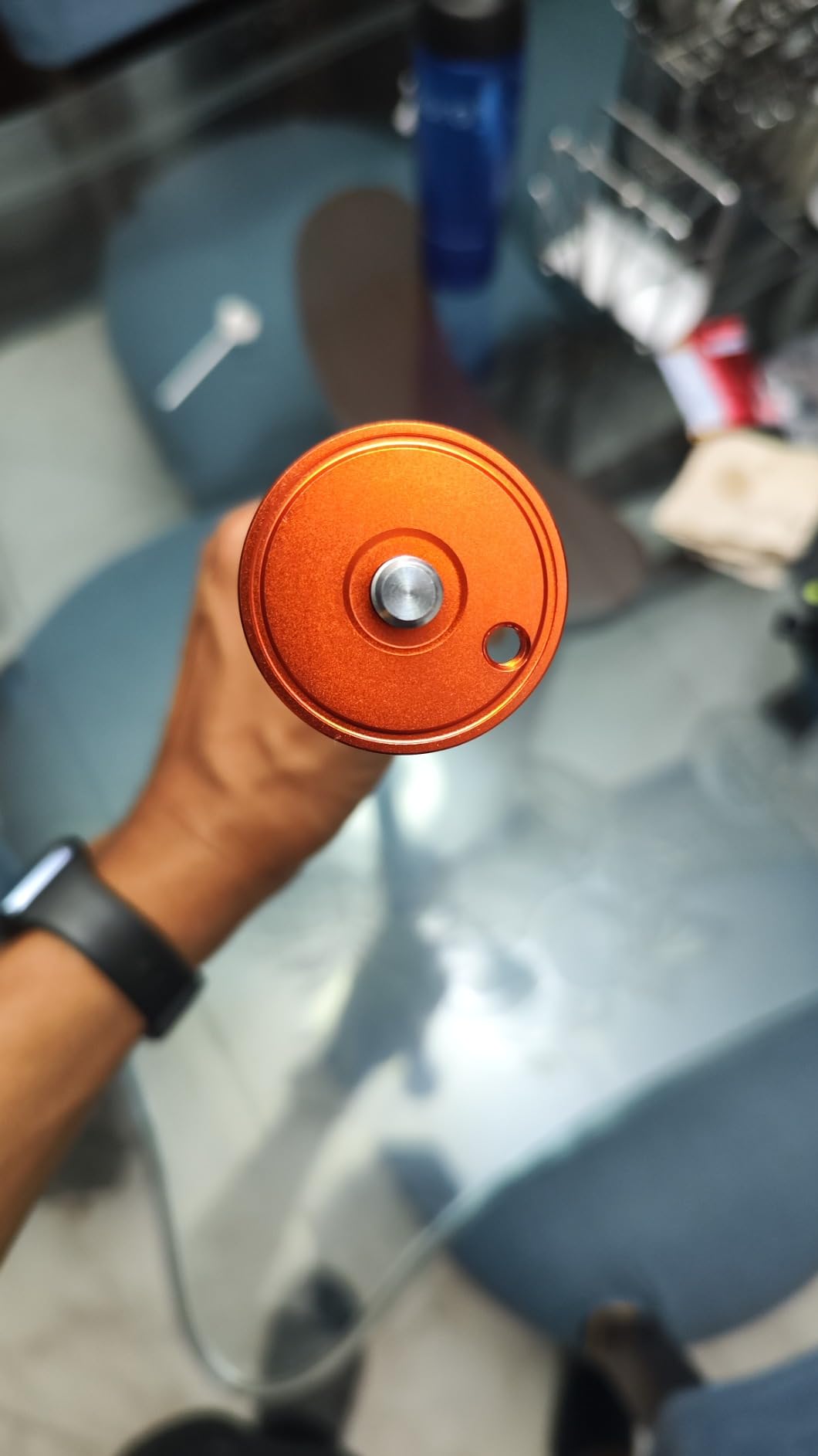Het is goed, ik kom blijkbaar in perfecte staat aan. Ik heb het gebruikt, alle stukken hebben goed gediend, behalve één, het is het platform (oranje) dat is bevestigd aan de centrale kolom, die zich onder het metalen balhoofd bevindt. Het onderdeel in kwestie komt er niet uit, het draait niet, dus ik kan de schroef die op die plek zit niet draaien, dat heeft me te veel geholpen. Ik heb per e-mail contact opgenomen met het bedrijf K&F Concept, ze hebben me om de product-ID gevraagd, ik heb het gestuurd, ze hebben niet gereageerd.