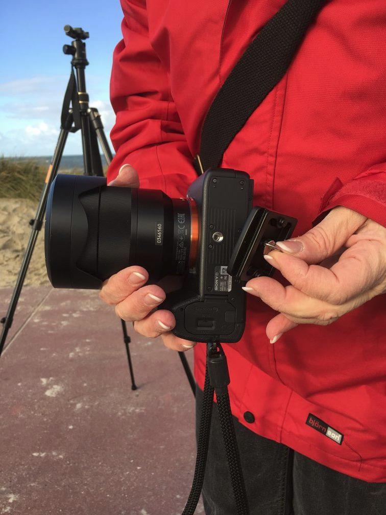 De hantering van de klembevestigingen is goed en gaat snel door mijn hand. Dus het statief wordt snel gemonteerd en gedemonteerd. De verwijderbare plaat wordt zoals gewoonlijk onder de camera geschroefd en wordt dan NIET bevestigd door een snelsluiter, maar wordt vastgeschroefd. Dat werkt prima, dat wel.