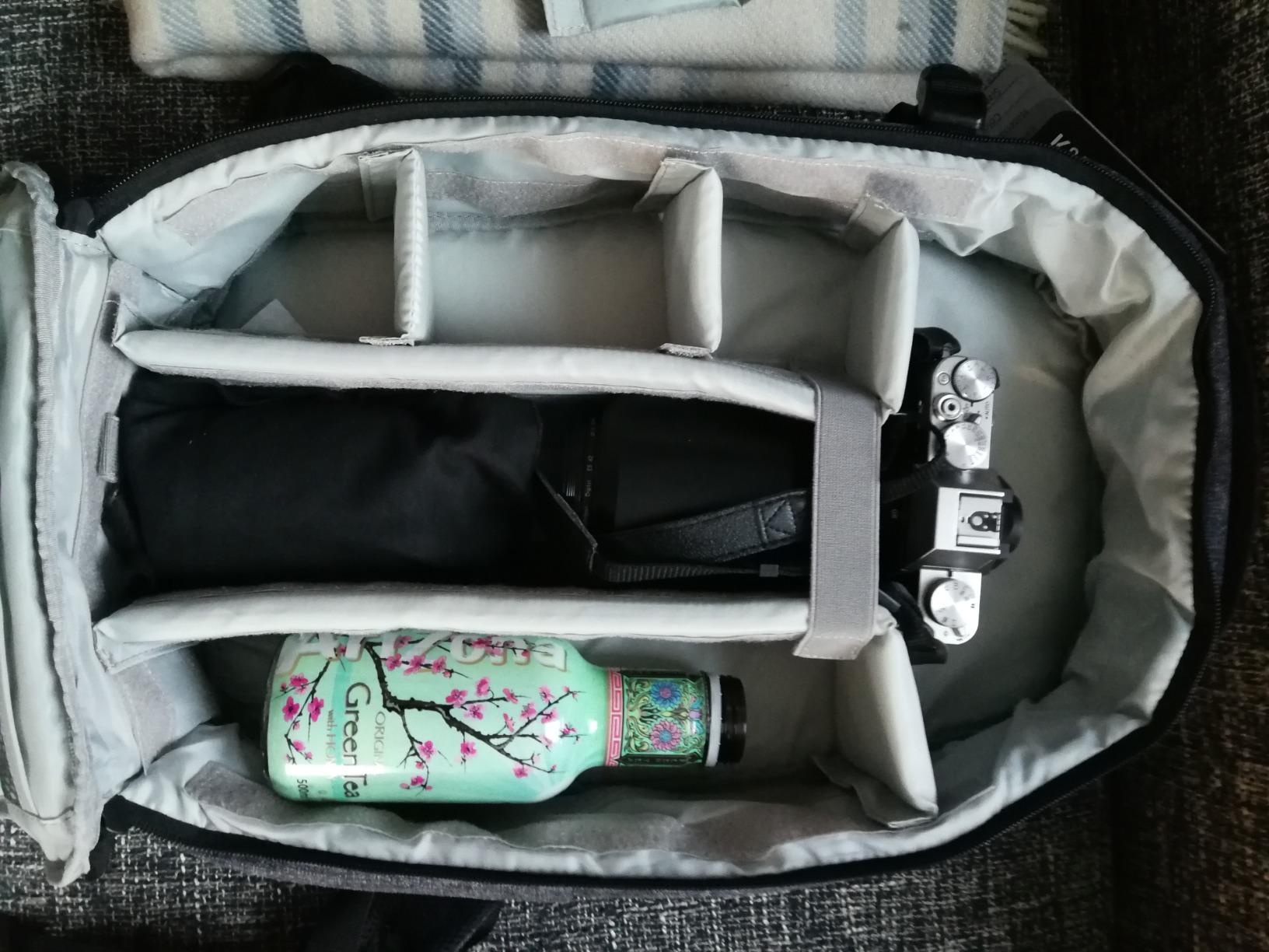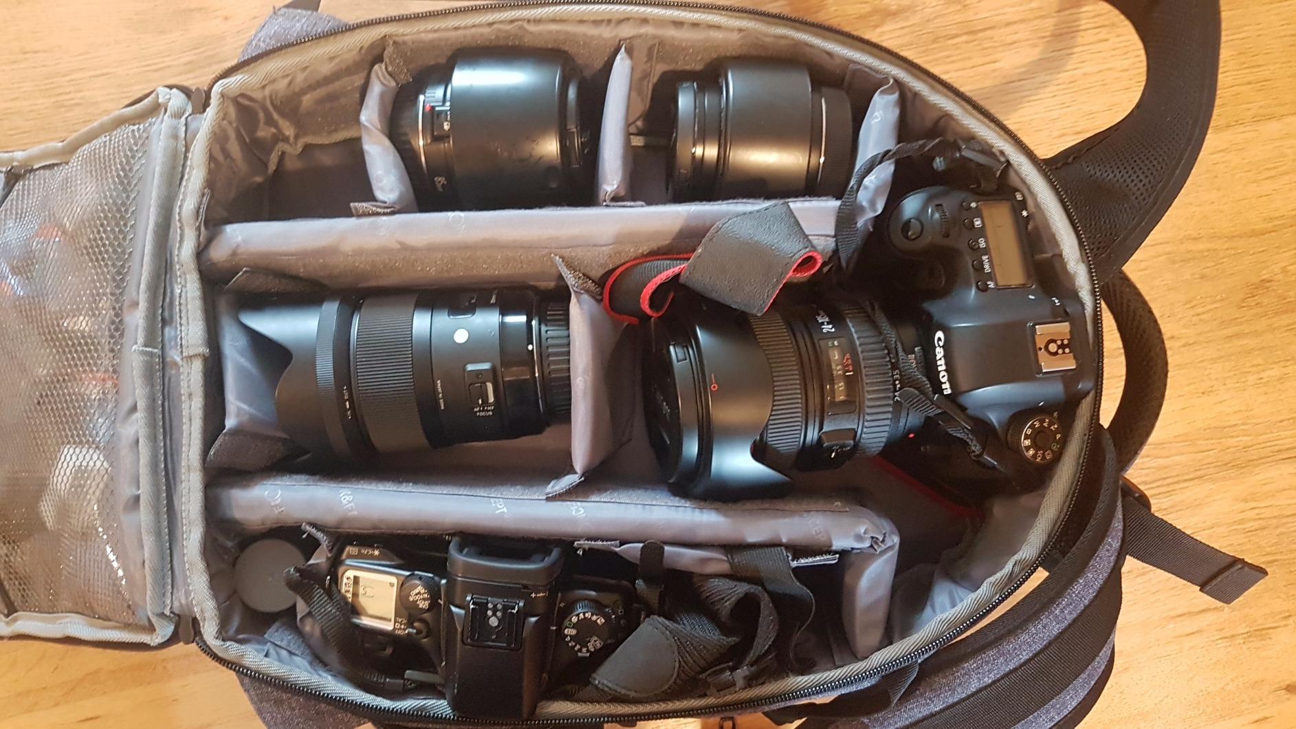 De rugzak ziet er goed uit en biedt over het algemeen voldoende ruimte voor dagtochten. Zelfs grotere lenzen zoals een Sigma 120-400 passen gemakkelijk in de rugzak met de camera.