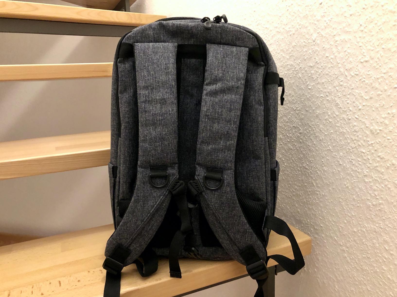 De rugzak heeft twee grote kussens en de rug is voldoende geventileerd. Ook beschikt de rugzak over een achtervak waarin je een tablet of notebook kunt opbergen. Een normaal reisstatief kan aan de buitenkant worden bevestigd. Er zijn extra zakken en opbergruimte aan de voor- en zijkant. Ik vond de beschrijving van de fabrikant erg leuk, die veel foto's met toepassingsscenario's liet zien.