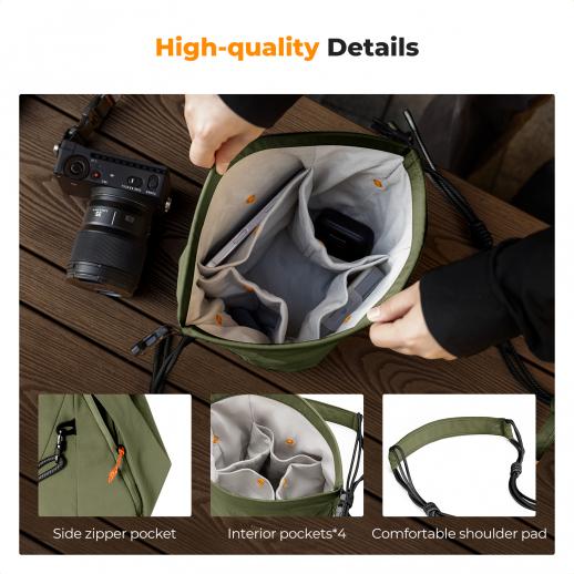 K&F Concept Camera Sling Bag – Kleine, Lichtgewicht Crossbody Cameratas voor Bescherming en Vielzijdigheid, Groen