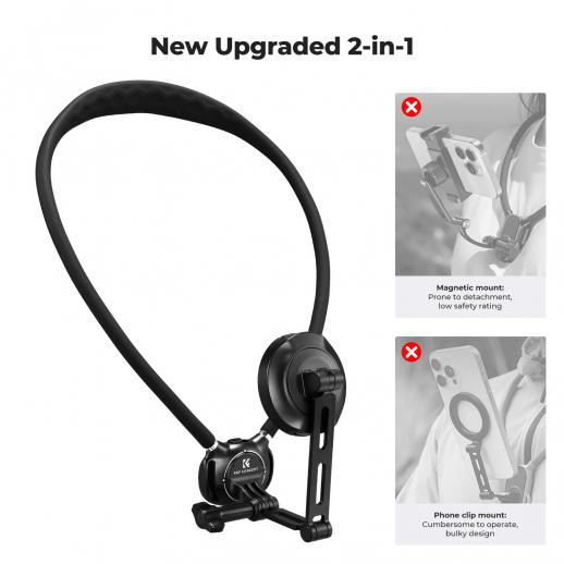 K&F CONCEPT Nektelefoonhouder, 2-in-1 magnetische en clip-on telefoonhouder voor om de nek, POV-telefoonhouder, handsfree borststandaard, compatibel met iPhone 17-12-serie en Android-telefoons