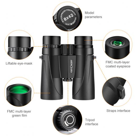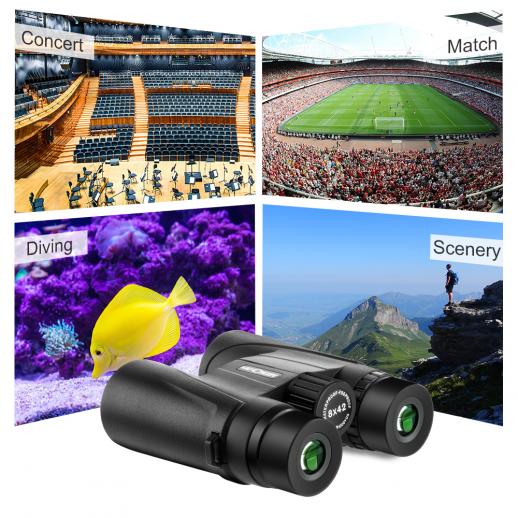 - * 8X42 HIGH-vergroting: 8x vergroting met objectieflens met 42 mm objectief, Bak4 high-end prisma, meerlagige coatinglens, verbetert de lensdoorlaatbaarheid aanzienlijk, wat zorgt voor een meer kristalhelder, breed zicht.