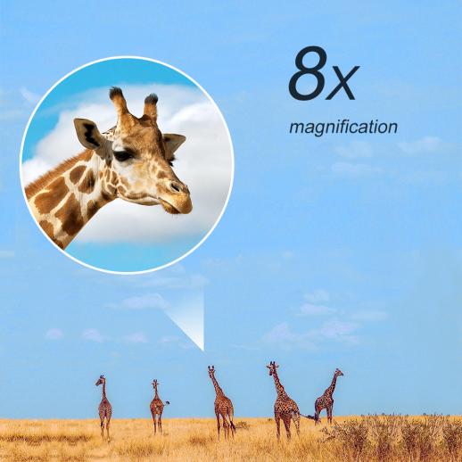 8X42 HIGH-vergroting: 8x vergroting met objectieflens met 42 mm objectief, Bak4 high-end prisma, meerlagige coatinglens, verbetert de lensdoorlaatbaarheid aanzienlijk, wat zorgt voor een meer kristalhelder, breed zicht.