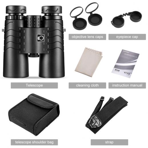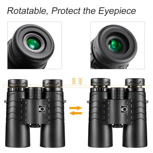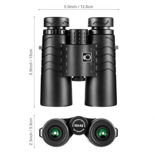 10X42 HIGH Vergroting: 10x vergroting met objectieflens met 42 mm verrekijker, Bak4 high-end prisma, meerlagige coatinglens, verbetert de lensdoorlating aanzienlijk, wat zorgt voor een meer kristalhelder, breed zicht.