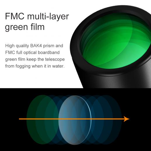 BAK4-prisma van hoge kwaliteit en FMC volledig optische groene filmband voorkomen dat de telescoop beslaat als deze zich in het water bevindt.