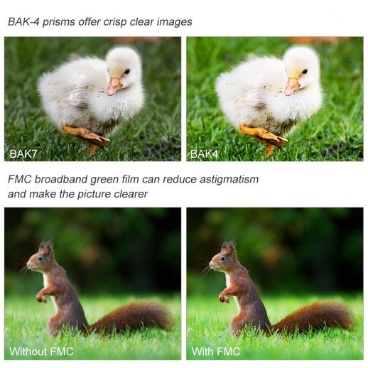 - * Groot gezichtsveld: 303ft / 1000yds; 101m / 1000m; Innovatief optisch systeem met hoogwaardig meervoudig gecoat BAK4 optisch glas voor hoge resolutie en heldere beelden.