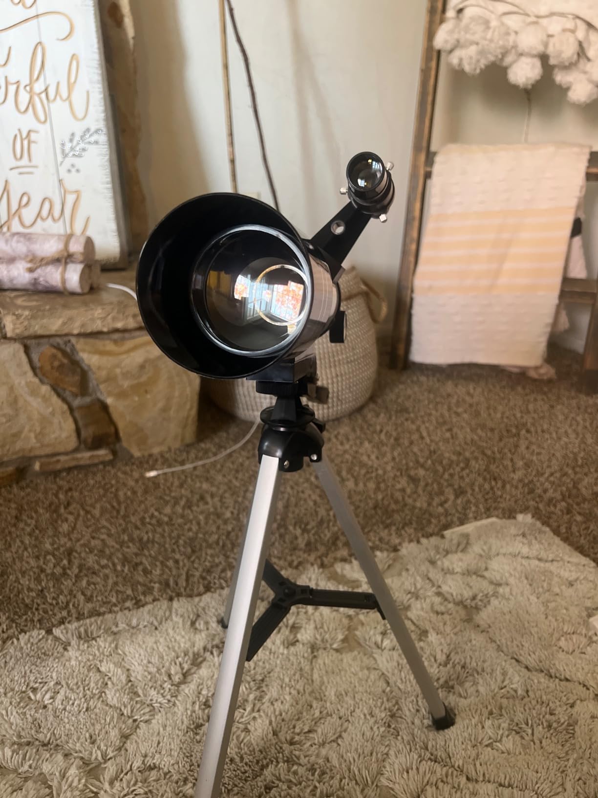 Dit wordt een topcadeau voor de feestdagen! Deze telescoop ziet er niet alleen legitiem uit, hij voldoet ook aan alle criteria. Het zicht was helder, de nauwkeurigheid was verbazingwekkend en ik was onder de indruk van de hoge kwaliteit voor een geweldige prijs! Er werden twee posters meegeleverd! Perfect voor kinderen die geïnteresseerd zijn in het leren over de ruimte en onze atmosfeer!