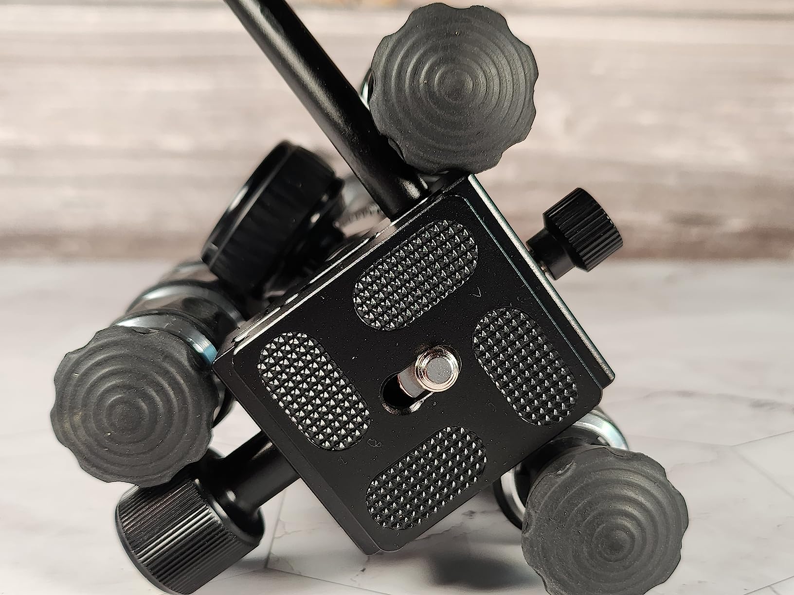 Ik heb meerdere statieven, maar minder balhoofden, dus ik moet vaak het balhoofd van het ene naar het andere wisselen, afhankelijk van de behoeften. Dit balhoofd is zeer praktisch gebleken. Ik hou echt van de stevigheid, stijl, veelzijdigheid en het metalen gevoel van dit ballenstatief. Voor videografie is het misschien niet de beste keuze, omdat het geen vloeistofkop is, maar voor fotografie werkt het perfect. Het is zeer flexibel, dus u kunt het configureren zoals u dat wilt, zodat het aan uw opnamebehoeften voldoet. Eén ding om op te merken is dat er een 3/8 schroef op de basis zit, dus ik moet een 3/8 naar 1/4 adapter aanschaffen om hem op mijn statief te monteren. Een ander ding om op te merken is dat je, in tegenstelling tot sommige andere balhoofden die de clip-on plaat gebruiken, de zijhandgreep moet draaien om hem vast te draaien.