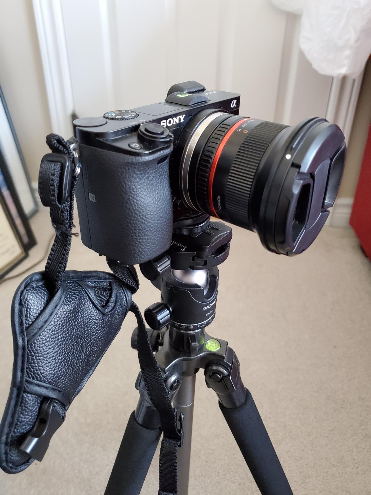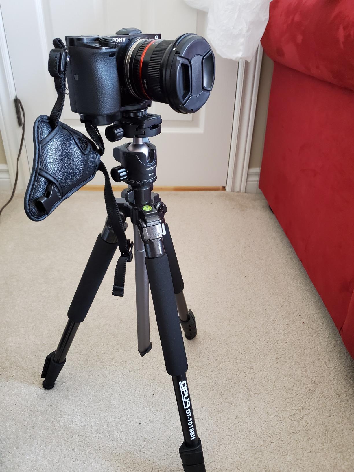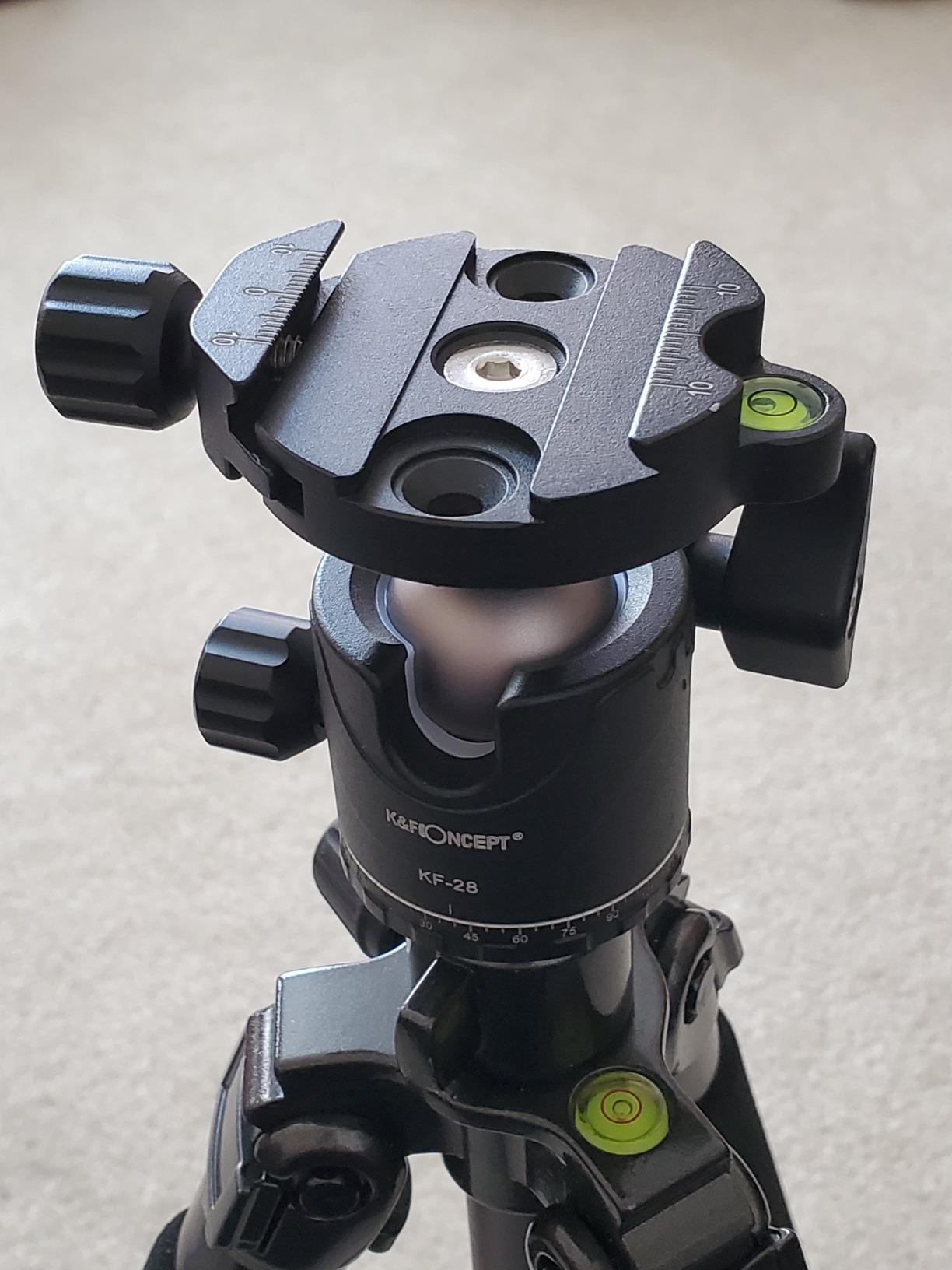 nauwelijks ontvangen al gemonteerd op mijn statief... het enige wat nog rest is om te testen, aan de andere kant heb ik gelukkig een balhoofd, want behalve die op de plaat is er geen ander om de camera te bevestigen.