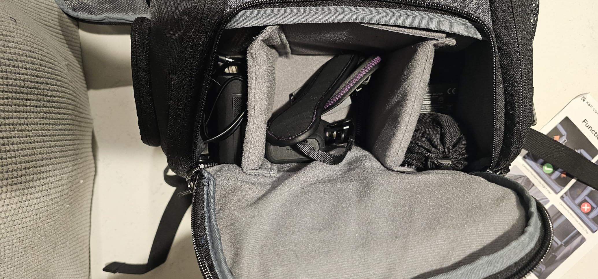 Deze rugzak doet zijn werk en hij past perfect onder de vliegtuigstoel! Het enige is dat sommige verwijderbare verdelers niet goed kunnen worden geplaatst zonder dat ze omvallen na het verwijderen van de camera of lens. Het is geen dealbreaker, maar een beetje vervelend.