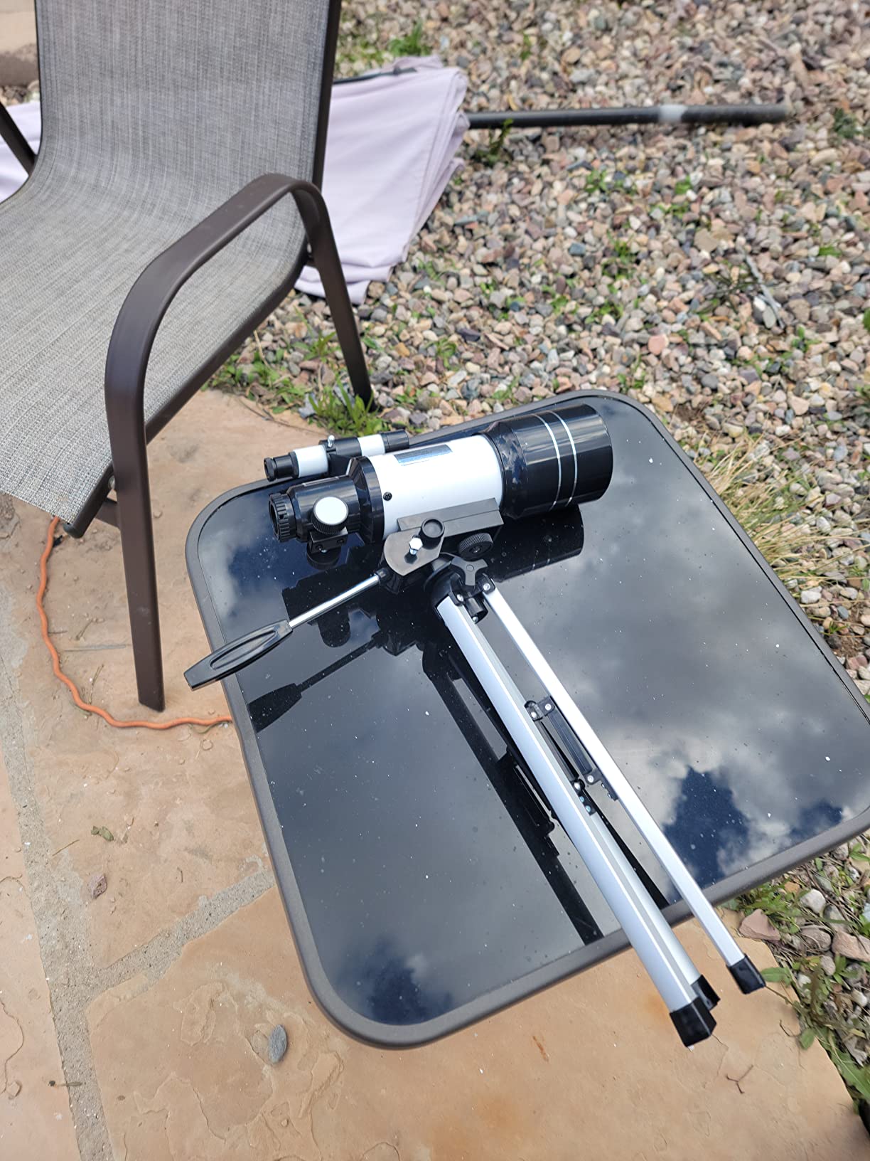 Ik kocht dit voor mijn kleinzoon als kerstcadeau. Hij vond het geweldig! We hebben veel uren in de achtertuin doorgebracht om de nachthemel te onderzoeken. Dit is heel gemakkelijk op te zetten en te gebruiken. Ik denk dat het een heel goede eerste aankoop is. Ik wou dat de poten langer waren om het hoger te maken. Als je het buiten op een tafel zet, is het heel gemakkelijk te gebruiken.