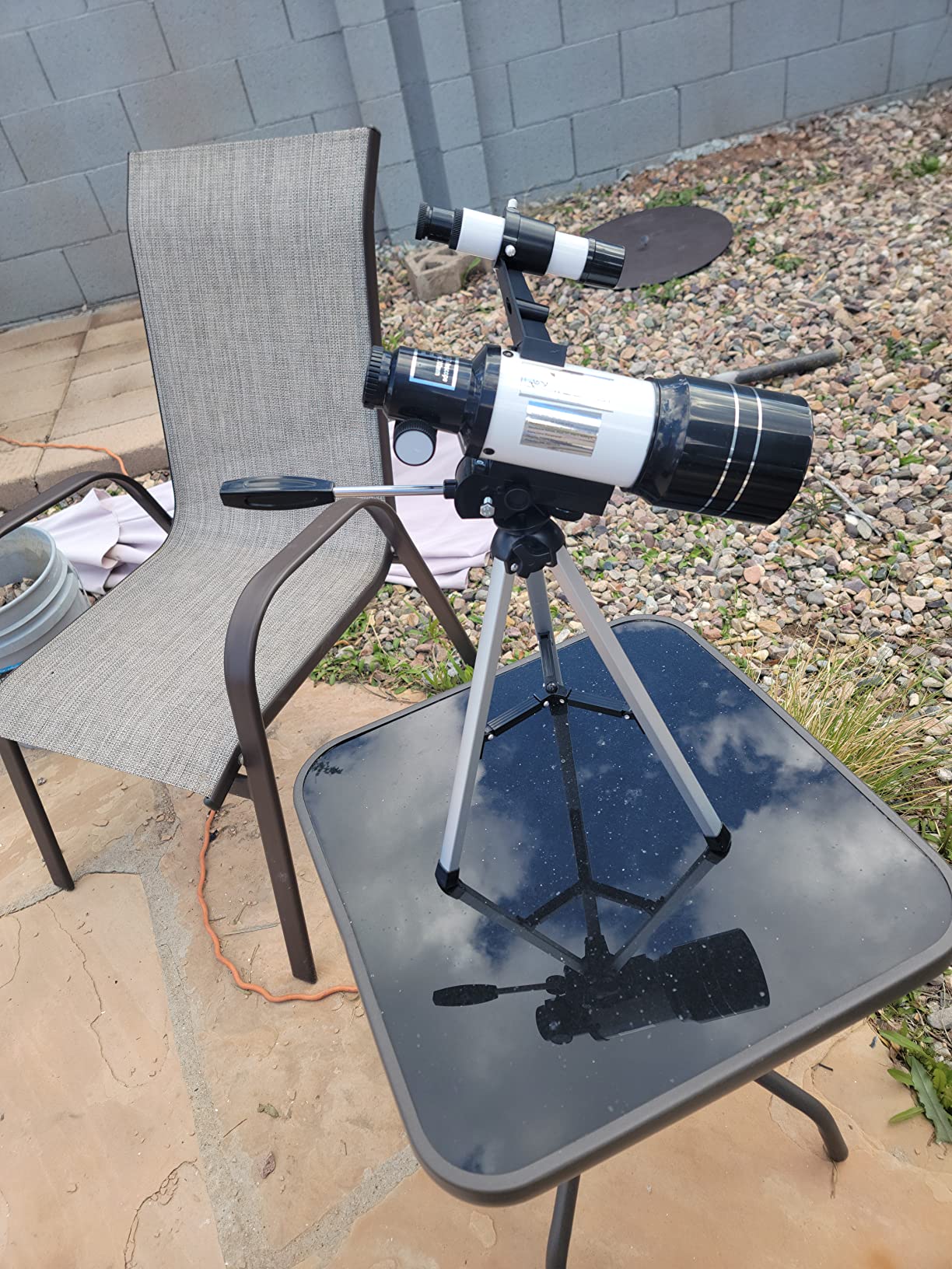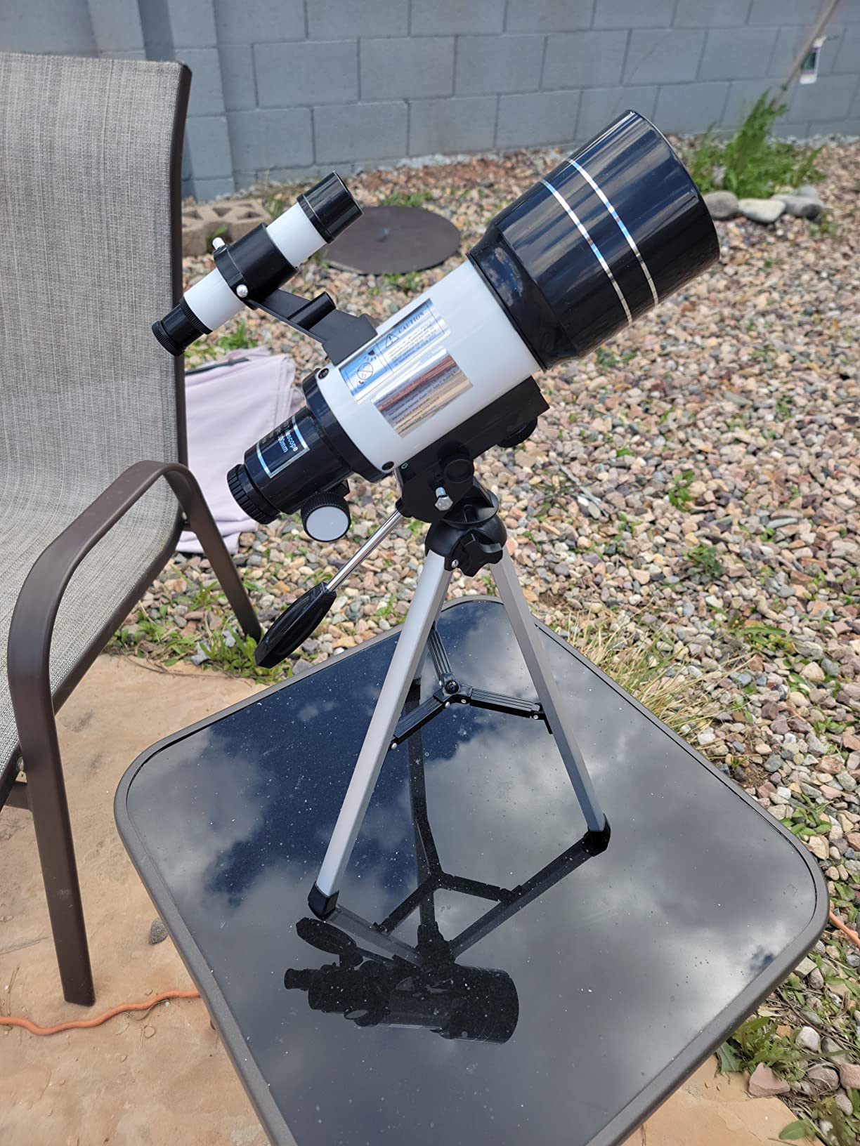 Mijn vader kocht deze telescoop voor mijn 10e verjaardag. Het was een beetje lastig om in elkaar te zetten, maar we kwamen er wel uit. Toen kon ik de maan van dichtbij zien, wat cool was. Het lastige is dat je hem heel stil moet houden. Ik vond het fijn dat je verschillende lenzen kunt gebruiken, zodat hij je ogen niet pijn doet. Ik raad deze telescoop aan als verjaardagscadeau voor iedereen die van astronomie houdt, maar als het een kind is, hebben ze misschien hulp nodig van een volwassene. Beoordeling door volwassenen. Dit is een geweldige telescoop voor beginners. Hulp van een volwassene nodig voor het opzetten en scherpstellen. Het scherpstellen kostte wat extra tijd en er is iets helders nodig, zoals de maan, in helder zicht, om een heldere focus te bereiken. We zijn over het algemeen tevreden met onze aankoop en zouden dit product aan anderen aanbevelen.