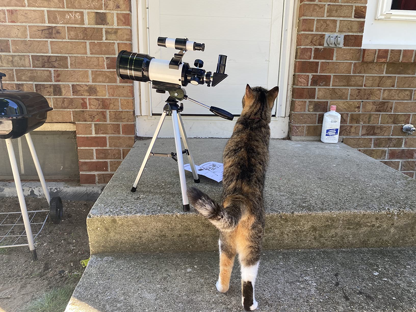 Ik kocht deze telescoop voor de verjaardag van mijn negenjarige zoon. Hij had nog nooit een telescoop gehad en de prijs voor deze was geweldig. Toen hij aankwam, waren we erg blij met de kwaliteit van de telescoop. Het duurde even voordat mijn man en ik hem de eerste keer scherp konden stellen, maar daarna was hij heel eenvoudig te gebruiken en we vinden het geweldig dat je je telefoon kunt gebruiken.