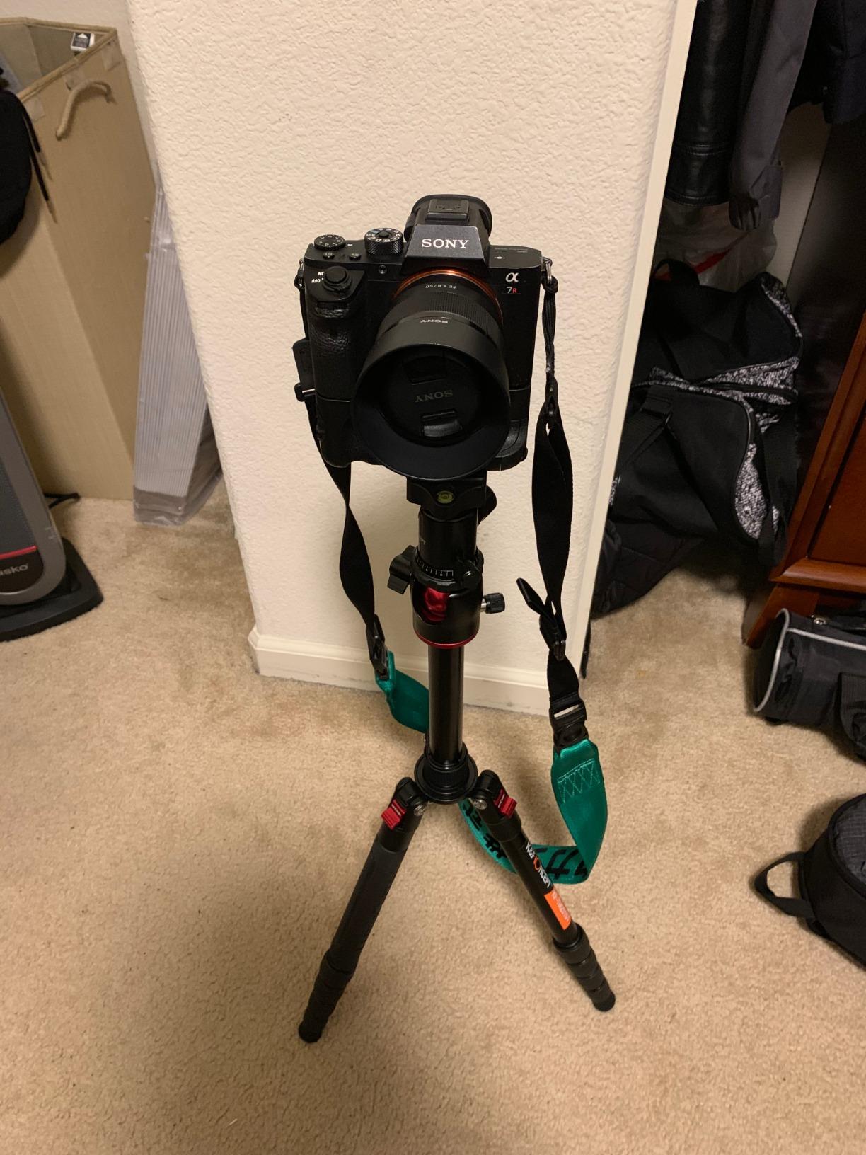 Ik had onlangs een klein Manfrotto-statief gekocht, maar het was te licht en bewoog heen en weer als ik lange belichtingen wilde maken, dus ik had iets stevigers nodig. De TM2515T werd me aanbevolen door een vriend en met de volledig metalen constructie dacht ik dat dit een betere keuze zou zijn. Het houdt mijn Sony A7Rii comfortabel vast, samen met de batterijgrip.