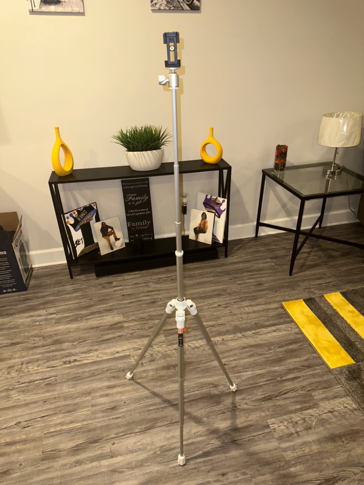 Uitstekend statief. Deze heeft zoveel toepassingen en kan op verschillende hoogtes worden aangepast. Ik raad het ten zeerste aan, omdat het allerlei verschillende mobiele apparaten bevat. Het is stevig en heeft een uitstekende prijs-kwaliteitsverhouding.