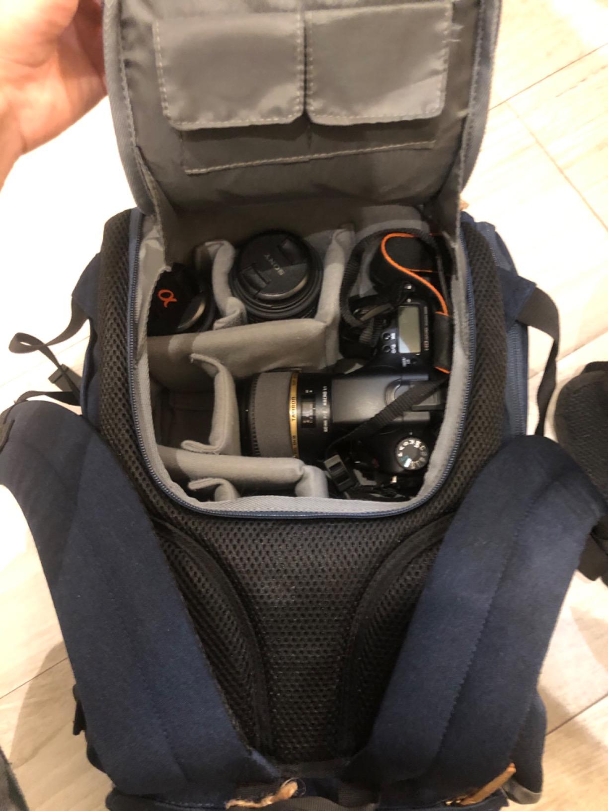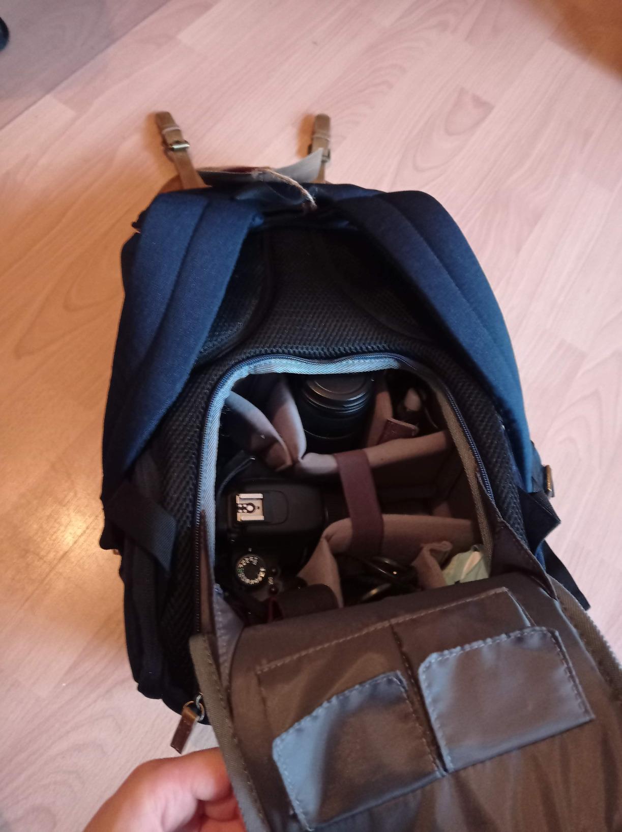 Ik ben overtuigd door mijn nieuwe tas! Bovenal is het ontwerp erg mooi en past het overal bij. Het is onmogelijk om te zien dat het een cameratas is. Ik vind het leuk dat het “foto”-gedeelte verschillende compartimenten heeft om de camera en lenzen in op te bergen, evenals verschillende vakken voor doekjes, geheugenkaarten, enz. Met het bovenste gedeelte kun je naast het apparaat meenemen wat je wilt, geweldig!