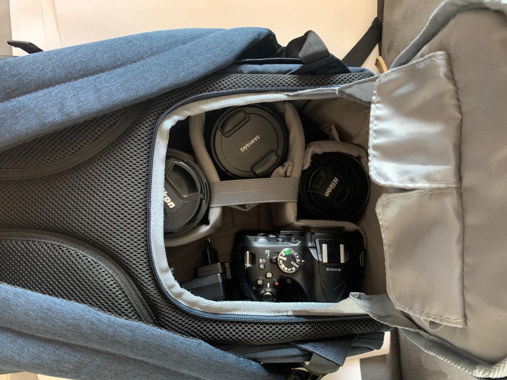 Ik gebruik deze tas voor mijn foto-uitjes. Ik hou van de ruimte; deze twee compartimenten zijn goed gescheiden