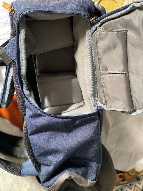Camerarugzak. Praktisch met meerdere vakken om de camera en voorwerpen in op te bergen. Twee ritssluitingen voor toegang tot de camera, één aan de achterkant en één aan de zijkant Ik raad dit product aan aan de fotograaf.